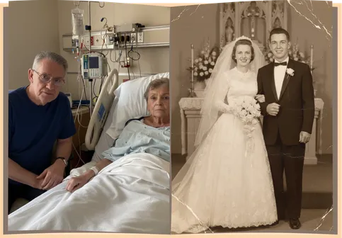 Do lado da cama dela no hospital, bordando cada pano de prato.